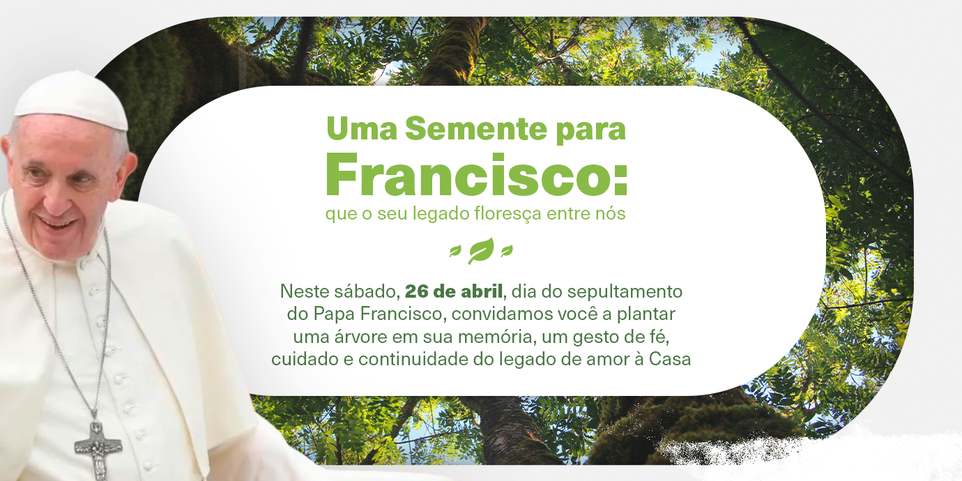 Neste sábado, 26 de abril, dia em que o Papa Francisco será sepultado, convidamos todas as comunidades a se unirem em uma homenagem simbólica e cheia de significado: plante uma árvore em sua memória.